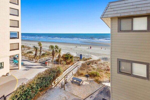 Discover the comfort of Sea Cabin 325, featuring a fabulous ocean-view balcony, three TVs, ceiling fans, and the convenience of a washer and dryer within the condo. This meticulously updated and beautifully decorated beach haven in soothing beach blues awaits to elevate your coastal retreat.