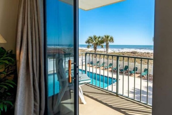 Spacious, oceanfront condo with extra wide balcony on the beach.