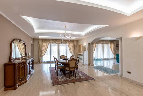 Die Villa ist großzügig und beeindruckt auf den 1. Blick. Der Vermieter ist unfreundlich. Bei Ankunft ging kein warmes Wasser und auch das Gas in der Küche funktionierte nicht, was auf einen Defekt im Heizungssystem zurück zu führen war. Wir hatten Fisch gekauft und mussten dann Pizza bestellen. Der Vermieter kam und wir hatten warmes Wasser durch eine Notreparatur in einem Bad gegen 22.00 Uhr. Bei dem Gewitter in der Nacht regnete es in 3Zimmern rein und wir mussten tüchtig aufwischen. Am anderen Morgen sollten laut Vermieter alle Bäder funktionieren jedoch nach der 1. Benutzung tropfte das Wasser durch die Decke so das wir für den gesamten Aufenthalt 1 Bad zum Duschen für 9 Personen benutzten.