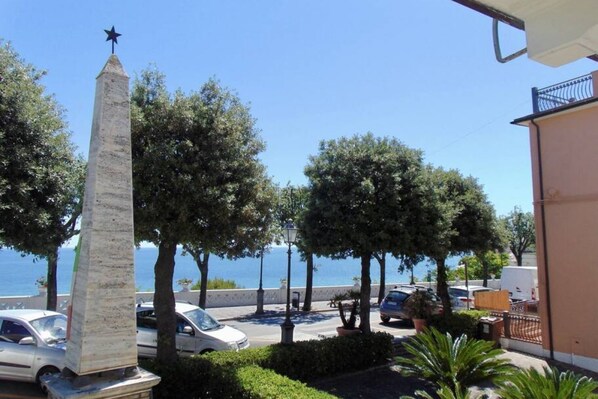 Descrizione: primo piano di casa a schiera. L'appartamento è composto da ingresso su piccolo soggiorno, angolo cottura con piano ad induzione e lavatrice, una camera con letto matrimoniale e letto singolo con terrazzino, seconda camera matrimoniale con splendida vista sul mare e sulla Via Roma, bagno con doccia.