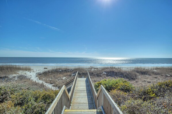 Easily access the soft OKI sand through the community walkway to beach, seasonal community pool, swing set, covered picnic area with park grills. The condo community is just across the street from the Oak Island Golf Club, and a short drive to Oak Island Lighthouse. Convenient to local restaurants, shops, parks and more.
