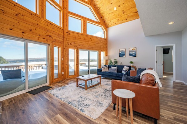 Adventures in Paradise is an exquisite log home among rolling hills and open fields. Whether you are simmering in the outdoor hot tub or catching some rays from the large deck, this home beckons you outdoors. You can even enjoy the beauty of nature from inside the home, thanks to the home’s towering ceilings with windows that run from floor-to-ceiling in the great room. Best of all, Adventures in Paradise boasts an ideal location in central Deep Creek, just seven miles away from Wisp Resort, 2 miles away from the popular Honi Honi bar, and a short walk or drive down to the home’s lake access point. Down at the community lakefront, you’ll find a covered community pavilion, a picnic table, and an over sized sandbox for the kids. Perfect for days spent by the lake! Ready for ‘Adventures in Paradise?’ Reserve your stay today!