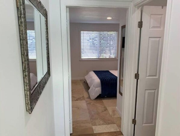 The bedroom includes a comfortable queen-sized bed with soft linens and pillows, ensuring a restful night's sleep. The living area is bright and airy, with plenty of natural light and comfortable seating. The garden view provides a tranquil backdrop to your stay, allowing you to relax and unwind in the midst of nature. The unit is located in a quiet and safe neighborhood with a private entrance for your convenience. We're just a short distance away from restaurants, shops, and public transportation, making it easy to explore all that the area has to offer.