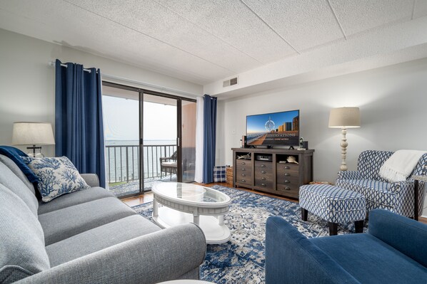 If you're looking for an adorable one bedroom bayfront condo with lots of personality, this is the place! The relaxing views of the bay from your balcony will be a great way to start your day with morning coffee. Sleep capacity is 4. King size bedding in the bedroom, and Queen sleep sofa in living area, along with other beachy updates throughout. Fully equipped kitchen to prepare your meals or venture out to the many popular restaurants nearby, and bypass doing dishes! Take a dip in the Ponte Vista inground pool to cool off on hot days. Convenient to shopping, mini-golf, and just a short drive to the famous OC boardwalk. Minutes to the beaches, where many of the ocean block parking is free & first come, first serve. This property rents any 3 nights all season.