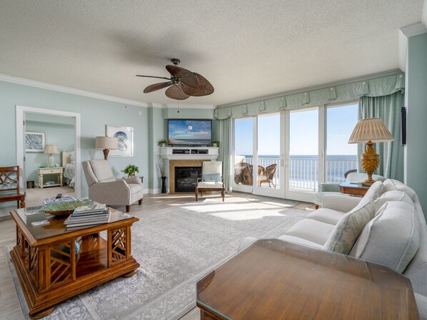 This condo was wonderful. Enjoyed the space that was well appointed in every way. Kitchen had everything you could possibly need. Fabulous views of the ocean, 2 fireplaces and lots of books and games to enjoy. The location is great. Can walk to everything. The indoor pool on the roof was wonderful. Everything was clean and in excellent condition. I would recommend this place 100 percent. A real joy to stay here!!