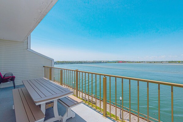 This is our first time staying on the bay. We loved the location and watching the sunset every evening. We enjoyed the balcony and watching the boats, jet skis, people fishing, drawbridge, and dolphins! We did not use our cars much at all while staying as everything from parks to convenient stores are just minutes away! The walk to the beach is super easy. The beds were comfortable with plenty of fluffy pillows. The kitchen had all the essentials for making meals which was so nice. The only “negative” was the top floor has very little privacy but could be easily remedied with window coverings on the window and door that looks down to the kitchen and a real door on the little bonus room as you can hear everything going on in the bathroom everywhere in the house. We would recommend despite these things as the location was perfect, the decor is beautiful and what you want in a beach house, and it was super clean!