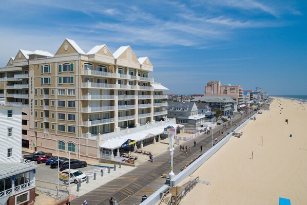 Incredibly located right on the boardwalk in the heart of Ocean City, this wonderfully appointed condo provides every essential for an unforgettable beach trip. Enjoy direct access to the beach and boardwalk downstairs and an outdoor swimming pool on the grounds.
