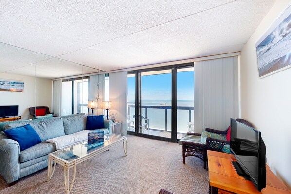 Let the charming vibes of this condo lull you into a peaceful state the moment you step inside! This beachfront condo is well-equipped with everything you and your guests could ever need to spend a carefree and restful vacation. The kitchen has been equipped with all the essentials, including a full-size fridge, stove, toaster, dishwasher, oven, coffee maker, and microwave. Don't hesitate and surprise your loved ones with savory meals and beach snacks during your stay. The living area is all about comfort and coziness with inviting furniture and a TV. Then, make your way over to the private balcony and get ready to experience a picture-perfect sun set that will blow your mind! The on-site washer/dryer adds convenience to your stay.