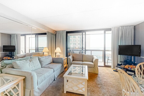 Wake up every single day to the unmistakable sound of the crashing waves at this perfect beach condo! It has everything you and your guests could ever need to spend a carefree and restful vacation. It features a well-equipped kitchen with all the essentials and granite countertops, central air-conditioning, board games, a private balcony, on-site washer/dryer for your laundry needs, comfortable and inviting furniture, and TV with cable.
