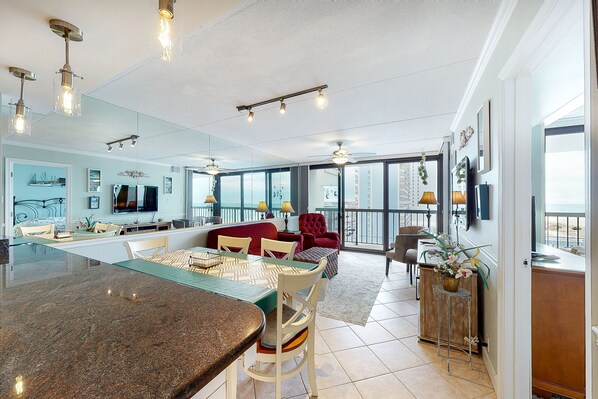 Ocean-view condo with balcony, pools, tennis, gym & saunas