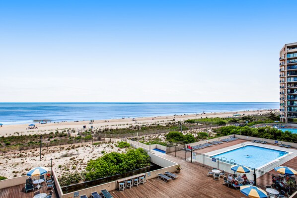 Oceanfront condo with huge balcony, bay views, & outdoor pool