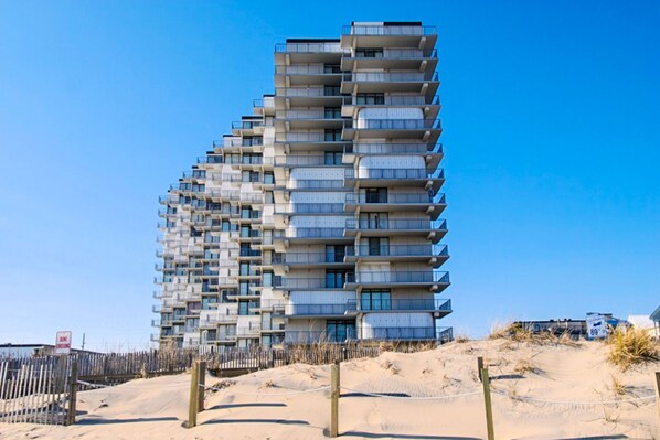 The Sea Terrace is a uniquely designed, oceanfront building in midtown Ocean City, with grounds that include a heated beachfront swimming pool, a sundeck, deck tennis, and direct access to the golden sand beach out back. Coastal Highway - the main thoroughfare that runs north to south through Ocean City and is lined with restaurants, casual eateries, nightlife, shops, markets, miniature golf courses, and other sources of entertainment - is less than a block west. The 58-acre expanse of Northside Park is two miles north, while the heart of the Ocean City Boardwalk awaits just over four miles south.