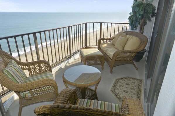 PLAZA 1701 9800 Coastal Hwy. Saturday to Saturday NON-SMOKING - NO PETS Beautifully decorated, direct oceanfront, 3 bedroom, 2 bath condo is a vacationer's dream! Nothing but fun awaits you in this condo! A gorgeous kitchen awaits your culinary talents while your family sits on the balcony enjoying the incredible, unobstructed ocean view. The oceanfront balcony is accessed from the living room and the beautiful master bedroom. Do you prefer watching the sun set over Assawoman Bay? The comfortably furnished bay side balcony is accessed from the third bedroom as well off the private entrance. This condo has a fully equipped, stunning kitchen with stainless dishwasher, fridge and microwave. Very comfortable leather reclining furniture in living room, with large flat screen television and surround sound. Great for family movie night! This condo includes free wi-fi, central air, 4 TVs and 2 Blu-ray DVD players. NEW Stack Washer and Dryer in unit. The bedrooms are carpeted. Renovated master bathroom has a walk-in shower with a built in seat. Also, no more lugging beach toys up 17 flights-Maximum occupancy 9.