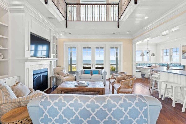 4 Kings, 4 Queens (2 in shared room), twin trundle, and curtains/Queen pullout sofa converts the sun room (second living area) into an additional room. Each bedroom features luxury linens and a smart TV.