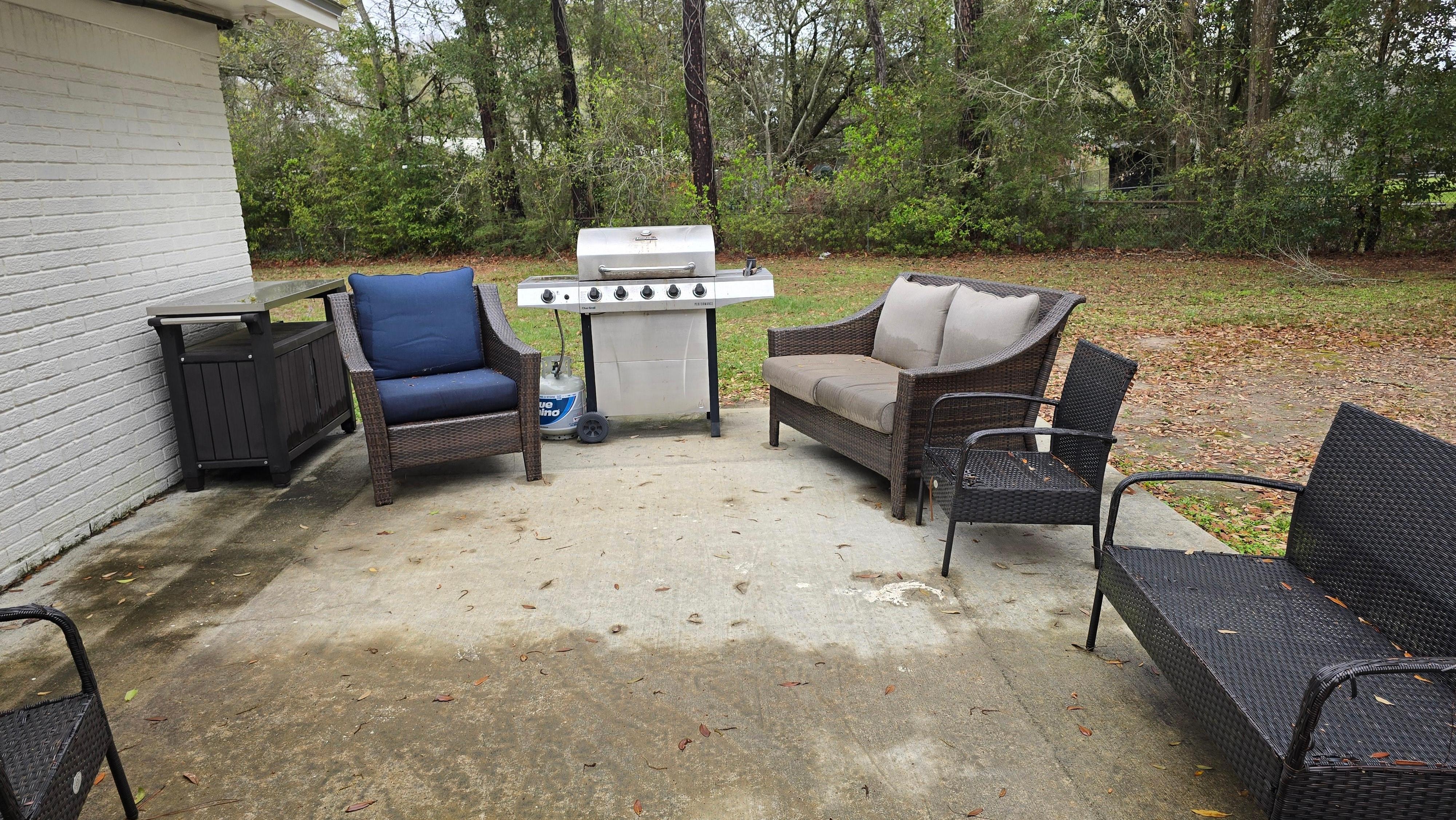 There is a fully-enclosed backyard for those bringing furry friends and an outdoor seating area to relax and take in the Gulf Coast breezes.