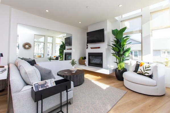 KEY FEATURES: ☆ Luxurious Master Suite: King Bed, Smart TV, Ensuite with walk-in closet, separate Shower, and Soaking tub. ☆ 2 Spacious Guest Bedrooms, each with King Beds, Smart TVs, and Closets. ☆ Open-Concept Living: Bright, relaxing living room with Large TV and gas fireplace. ☆ Fully Equipped Kitchen: Stainless steel appliances, dining for 8, pantry. Fully equipped for all sorts of cooking and baking ☆ Additional Highlights: Separate den with sleeper sofa and Flat screen presents a getaway space from the main living area. ☆ Large flat-screen smart TVs with your favorite apps pre-loaded and ready for your use with your logins