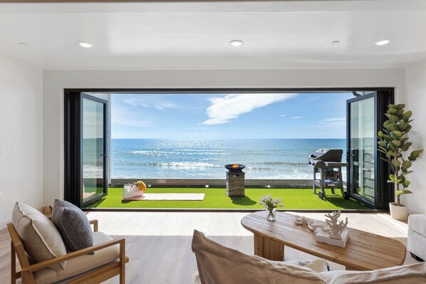 This condo was the perfect blend of hotel and rental experience. All bedrooms had their own bathrooms so it felt like little mini hotel rooms with a huge shared living space where we could enjoy games, movies, meals, etc. together. The panoramic opening on the patio gave the entire place an exclusive oceanfront feel -- we loved waking up to the crashing waves every morning! For those of us who love being near the water without getting sand everywhere, the balcony was the perfect hangout. I believe this is a relatively new listing, so they were still ironing out some kinks in terms of access codes, but they were responsive in helping us solve for the problems as they arose. They will also bring you fresh towels, additional supplies (paper towels, etc.) throughout your stay -- another hotel-like feature that isn't typical for rentals. The kitchen was very well-stocked as far as appliances, and they do offer a service to stock your groceries ahead of time if you'd like. We opted for Instacart deliveries when we arrived. This condo was about a 10-min walk from the Oceanside pier. There are a few eateries and a mini-mart within 10 minutes walking as well. All in all we'd definitely rent with Beachfront Only again!