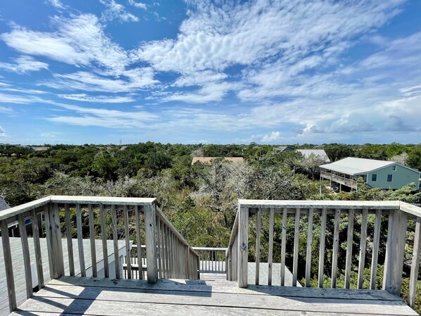 L'open space livello inferiore offre un grande spazio per le riunioni di famiglia. Questa casa dispone di 3 ampie camere da letto. Un ponte anteriore e generosa veranda protetta complimentarmi con il vostro relax all'aperto. Godetevi una fantastica vista dalla terrazza panoramica spaziosa con vista Pamlico Sound e il lontano Ocracoke Lighthouse.