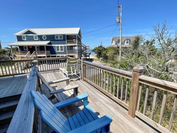 Situato proprio di fronte al Pamlico Sound Ocracoke Island. Godetevi il grande ponte avvolgente con vista sia della marcia del sale e il suono nelle vicinanze. Una veranda protetta posteriore offre ampie viste palude ed è perfetto per gli amanti del birdwatching.