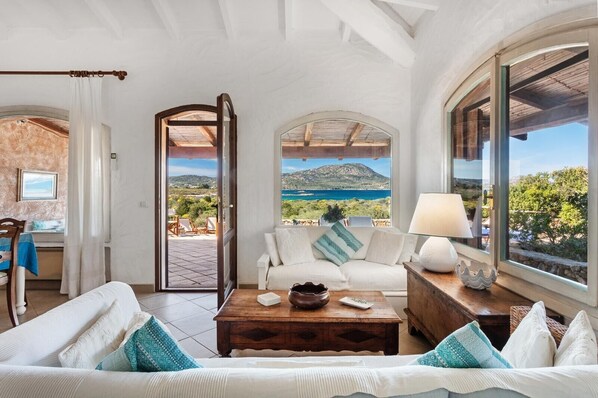 All’esterno potrete rilassarvi nel giardino privato e sulle terrazze, sia coperte che scoperte, con vista mare sul piccolo golfo di Costa Corallina e le sue spiagge bianche. Una doccia esterna offre ulteriore comodità dopo la spiaggia.
