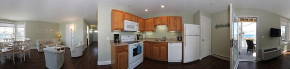 La cucina dispone di elettrodomestici moderni di dimensioni standard e include armadi ben forniti. La cucina in stile cambusa ha un bancone che serve in altezza. Sia che tu voglia fare un po 'di cucina o semplicemente portarti qualcosa da portare fuori dai molti ristoranti locali, la cucina può accogliere le tue scelte culinarie.