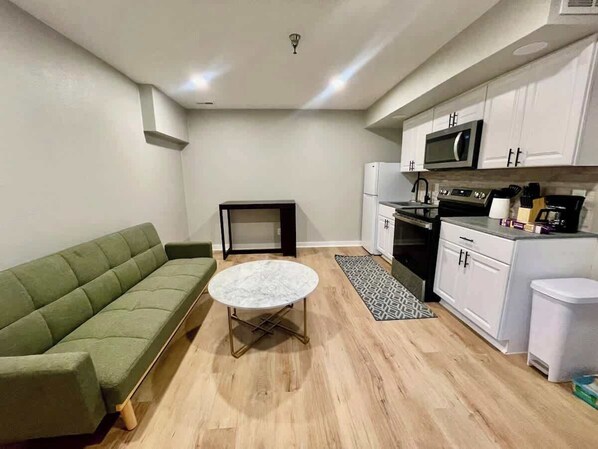 - Fully equipped kitchen and cozy living space make it feel like home.