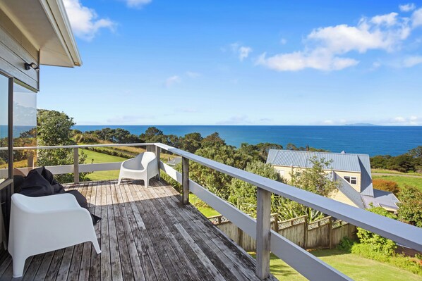 Imagine yourself in this tranquil setting, looking out to the blue water. Brew your hot drink with the Nespresso coffee maker and step out onto the spacious deck to enjoy your first sip with fresh coastal air and a stellar backdrop.