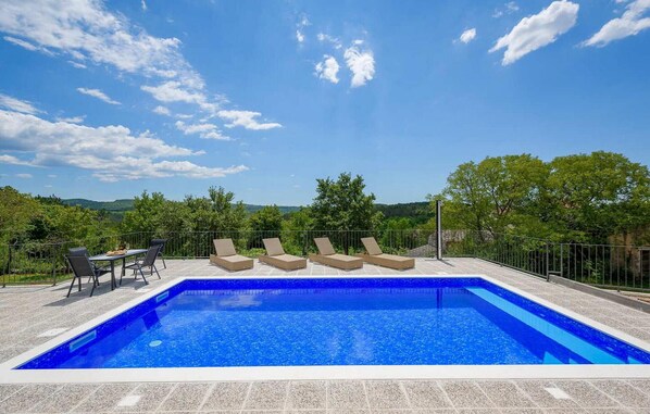 Dalla piscina si gode di una splendida vista sul paesaggio verde e sulle colline circostanti. La villa è stata costruita nel 1918 e completamente ristrutturata nel 2020. La zona circostante è nota per gli eccellenti produttori di vino, le ottime taverne tradizionali e la natura estremamente bella. Nelle immediate vicinanze della casa si trova una falesia naturale per l'arrampicata e a 3 km di distanza una cascata unica con un lago. Sul grande terreno, gli ospiti hanno a disposizione una piscina, sedie a sdraio, ombrellone, barbecue e tavolo da pranzo, parco giochi per bambini e parcheggio per diverse auto.