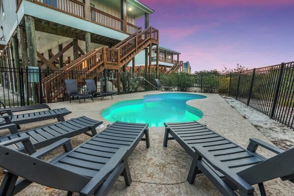Enjoy a luxurious beach vacation at this newly-built three-bedroom beach house. With ample natural light, modern decor, and comfortable furnishings, this stunning space will make you feel right at home. Relax by your private pool, cook in the full kitchen, enjoy the views and ocean breeze from the patios, and have your toes in the sand within minutes!
