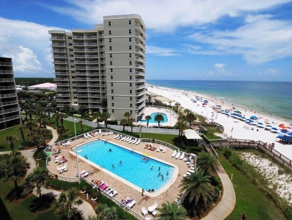 Beautiful condo , 20 steps from pool , very few more to beach, clean and well supplied with everything you might need.