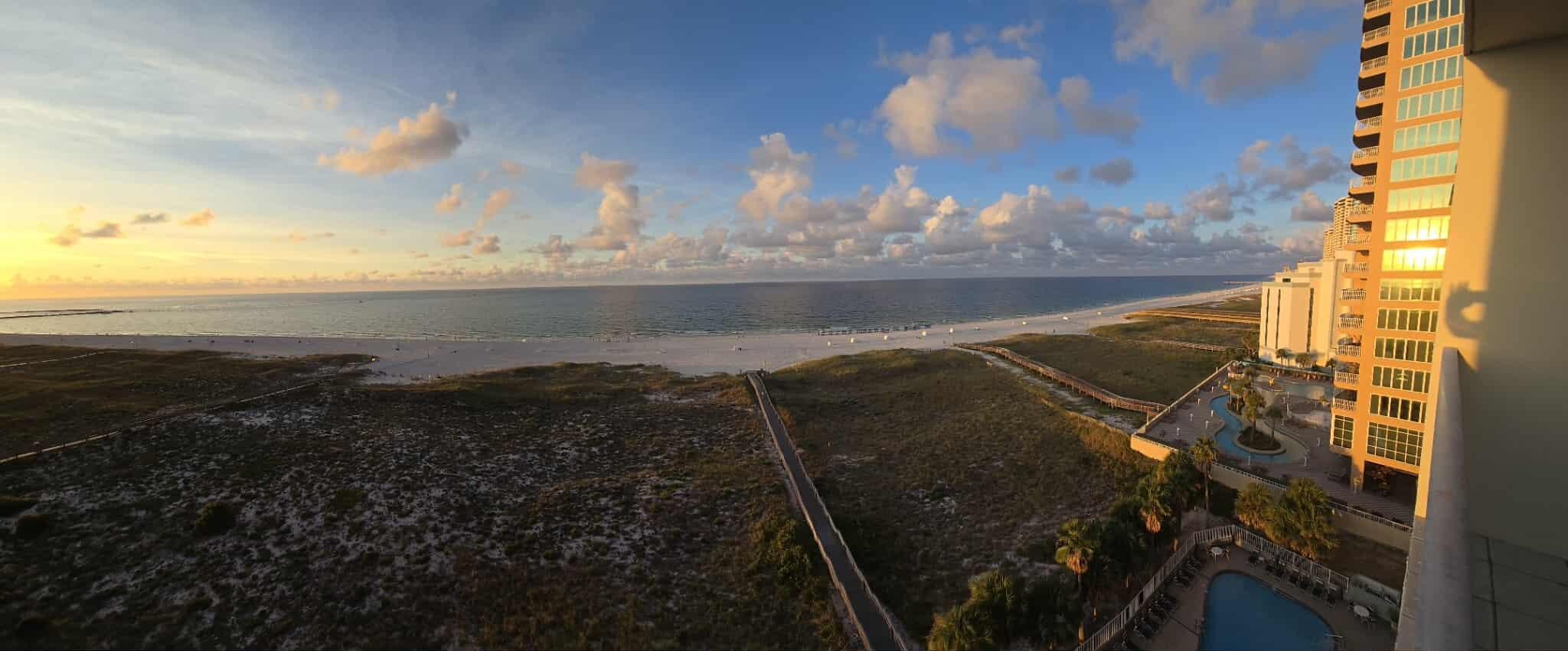 The property is located almost center of Orange Beach. Everything you would need to buy for your stay is within 5 minutes of the condominium. There are also plenty of restaurants of all varieties to the right and left of the building. The unit itself is very nice and clean and well equipped with all your kitchen needs. There is a large tv in the living room so you can watch your favorite shows. The couch and chairs are very comfortable. It comes with a full-size washer and dryer and plenty of closet space. There are 2 bedrooms with TV's and 2 full bathrooms. The bedrooms are spacious, and the beds are comfortable. It is an open concept layout with the living room, dining room and a bar separating the kitchen which has all full-size appliances. There are sliding doors leading from the master bedroom and the living room to the balcony overlooking the pool but most of all the beautiful beach and ocean. The property manager is always a call or text away with great communication. We give it an A