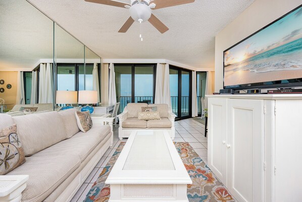 Arredamento incantevole e una splendida vista frontale del Golfo rafforzano questo condominio da 1 camera con 1 camera da letto che dorme quattro sul 6 ° piano di Phoenix III.