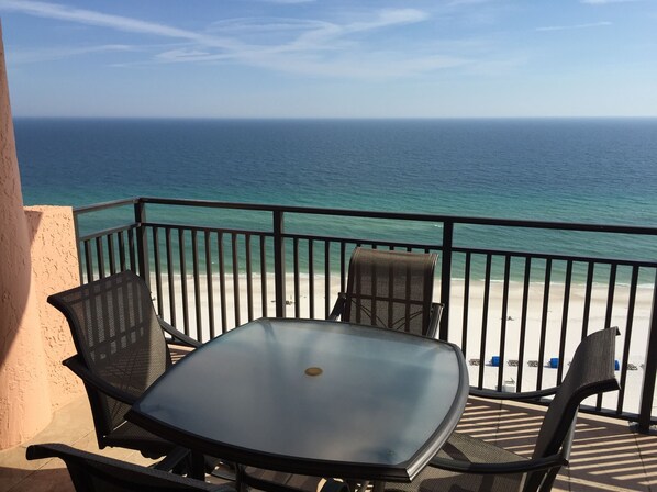 La vista del tramonto sul golfo dalla camera da letto principale, la zona giorno e l'ampio balcone, nonché i bellissimi arredi in stile caraibico con piastrelle in tutto, rendono questo condominio di 1341 piedi quadrati, due camere da letto e due bagni al quattordicesimo piano preferito dagli affittuari.