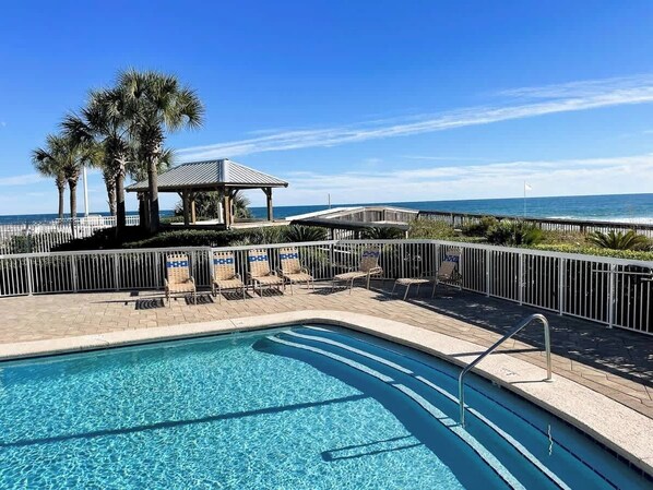 We loved this condo! Only complaint was hearing the traffic being so close but everything else was great! Pool was clear and sparkling blue💙
