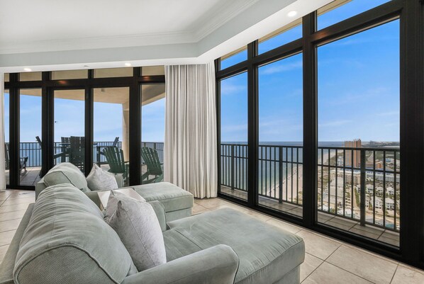 Mentre entri in questa unità, rimani immediatamente colpito dalle viste spettacolari dalla tua zona di vita familiare verso ovest e sul Golfo, che ti godranno ogni giorno e notte. Il balcone più grande e la zona giorno possono ospitare tutta la famiglia per attività o colazione con vista sulla spiaggia. Ogni camera ha una vista privata sulla costa e un bagno privato. Si tratta di un arredamento di lusso, spazio e privacy per tutto il tempo della famiglia o per un po 'di tempo privato quando necessario.