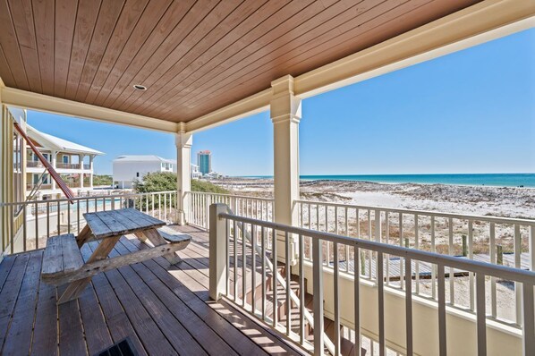 Summer Salt 3 East è un lussuoso duplex aggiunto alla famiglia di proprietà Summer Salt a Orange Beach, AL. Porta la tua famiglia, i tuoi amici o il tuo gruppo a sperimentare la privacy e lo spazio di un rifugio con vista sul golfo con 4 camere da letto e 3. 5 bagni. Summer Salt 3 East dorme 16. Condivide una piscina privata di 800 piedi quadrati con un ponte di piscina 2222 piedi quadrati con l'altro lato del duplex e 2 case. Gli ospiti possono accedere facilmente alla spiaggia utilizzando la passerella a est del duplex o dalla passerella appena fuori dal ponte della piscina in comune. Il livello principale e il secondo livello hanno entrambi un balcone con vista sul golfo della larghezza dell'unità. Puoi sederti e guardare le onde e le acque verde smeraldo del golfo da entrambi i balconi. Puoi anche gustare i pasti al tavolo da picnic situato sul balcone di primo livello. Il livello principale aumenta i colori chiari della spiaggia che si rilassano all'istante e creano l'atmosfera per il tuo soggiorno di vacanza. La decorazione fresca e calma ispirata alla spiaggia e gli elementi in legno naturale scorrono in tutta la casa. Lo stile ben arredato e la pianta aperta del livello principale includono le aree soggiorno, cucina e sala da pranzo, in modo che il tuo gruppo possa socializzare facilmente. Troverai un ampio soggiorno con una TV HD da 50 pollici completa di divano letto queen size, un altro divano letto completo e 2 comode sedie oversize con pouf. Adiacente si trova l'enorme cucina a vista con elettrodomestici in acciaio inossidabile, ripiani in granito, fabbricatore di ghiaccio indipendente e 8 posti a sedere in altezza. La sala da pranzo ha un grande tavolo che può ospitare comodamente 8 persone ed è perfetta per i pasti in famiglia e per aggiornarsi sulle attività della giornata. Per vostra comodità, anche un mezzo bagno si trova al livello principale. Tutte le camere da letto sono situate al secondo piano e il balcone a tutta larghezza è accessibile attraverso la hall, rendendo facile per tutti gli ospiti godere della vista sul golfo. Una ringhiera separa i due lati del duplex. La master suite si affaccia sul Golfo e offre una splendida vista sulle spiagge di sabbia bianca. Gli ospiti che soggiornano nella Master Suite avranno un letto king size, bagno privato, TV a schermo piatto e lettore Blu-Ray. Successivamente hai la camera a castello dove troverai 8 letti a castello tradizionali a due letti integrati. La camera a castello è dotata di TV a schermo piatto e Blu-Ray per intrattenere i bambini. Dall'altra parte della sala dalla camera a castello c'è un bagno full size. Le altre due camere hanno anche TV e lettori Blu-Ray dove gli ospiti possono ritirarsi nel loro spazio privato e rilassarsi. Uno ha un letto matrimoniale e l'altro ha una regina e condividono un bagno di Jack e Jill. C'è una lavatrice e asciugatrice full size situata nella hall al secondo livello. Summer Salt 3 East offre WIFI gratuito in tutto il WIFI e una griglia a carbone sotto il duplex. La biancheria da letto è: 2 letti king size, 1 letto queen size, 8 letti singoli incorporati - stile a castello (lunghezza standard 75 ") e un divano letto queen size. Il soggiorno e tutte e 4 le camere sono dotate di TV a schermo piatto con Blu-Ray. Il parcheggio coperto è disponibile sotto il duplex (4 veicoli coperti). Porta la tua famiglia e i tuoi amici quest'estate e fai ricordi ad Orange Beach, in Alabama, di cui parlerai a vita! Questo duplex è perfetto per vacanze individuali in famiglia o per riunioni di famiglia di grandi dimensioni o riunioni di gruppo poiché il duplex adiacente può essere affittato insieme alle due case con 7 camere da letto che compongono la famiglia di proprietà Summer Salt.