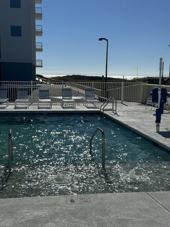 Construction of our new pool and boardwalk was just completed (see pictures)! Other public beach access is a close 4 min. drive east to Gulf State Park - Alabama Point East (they also have public restrooms and a parking pass is required). Another nearby public beach is Cotton Bayou, just a few minutes East of our condo.