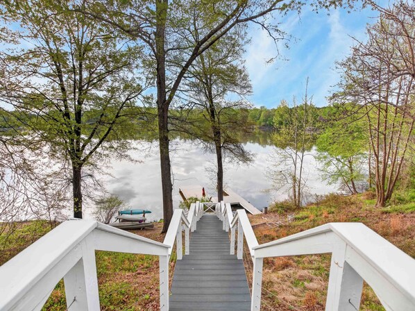 La casa ha un bel soggiorno spazioso, una stanza del focolare (con camino) e una grande cucina aperta e una zona pranzo che si affacciano attraverso due porte scorrevoli in vetro e finestre a palpebra sul grande ponte verso l'acqua e 1 molo di piedi quadrati di sotto.