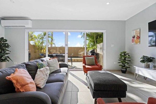 La residenza cittadina con due camere da letto Casa del Sole si trova a pochi passi dalla spiaggia di sabbia bianca e dalle tranquille acque turchesi della rinomata Eagle Beach di Aruba, classificata come la spiaggia n. 1 nei Caraibi e n. 3 al mondo. Organizza la tua vacanza al sole in questa casa sulla spiaggia arredata con gusto, situata all'interno del LeVent Beach Resort Aruba. Questa lussuosa e moderna casa vacanze su 3 livelli offre un patio posteriore con piscina privata, doccia esterna e tavolo da pranzo all'aperto a 4 posti per godersi il clima dell'isola. Inoltre, si dispone di una grande terrazza privata sul tetto con una vista parziale sull'oceano completata da un tavolo da pranzo all'aperto a 4 posti più 2 sedie a sdraio.