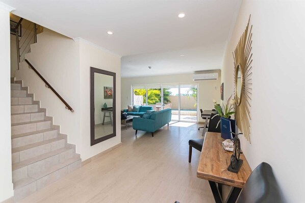 The Town Delights La residenza cittadina con due camere da letto si trova a pochi passi dalla spiaggia di sabbia bianca e dalle tranquille acque turchesi della rinomata Eagle Beach di Aruba, classificata come la spiaggia n. 1 nei Caraibi e n. 3 al mondo. Organizza la tua vacanza al sole in questa casa sulla spiaggia arredata con gusto, situata all'interno del LeVent Beach Resort Aruba. Questa spaziosa e moderna casa vacanza di lusso a 3 livelli offre un patio posteriore con piscina privata, doccia esterna e tavolo da pranzo all'aperto per godersi il clima estivo di Aruba tutto l'anno. Inoltre, si dispone di una grande terrazza privata sul tetto con una vista parziale sull'oceano completata da un tavolo da pranzo all'aperto a 4 posti più 2 sedie a sdraio.