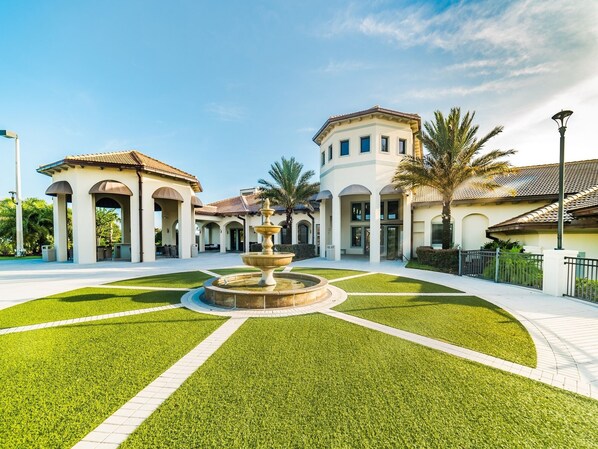 Al Champions Gate sappiamo che trascorrerai dei momenti indimenticabili in questo resort, nessun RIMPEGNO che NON DIMENTICATI! Il nome "Champions Gate" a Orlando non è solo un nome, ma un titolo che detiene la sua reputazione per essere famoso per la sua casa di 36 spettacolari buche del golf da campionato, progettato dal famoso golfista Greg Norman. Oltre all'arena del golf, ci sono servizi della clubhouse Oasis che offre a coloro che preferiscono fare altre attività. Una piscina con scivoli d'acqua, lazy river, splash park, centro fitness, tiki bar, cinema e molto altro. Tutto ciò che desideri o di cui hai bisogno è vicino a casa tua in Champions Gate Resort. Un negozio di alimentari nella comunità insieme a una farmacia Walgreen, banca, distributore di benzina e ristoranti.