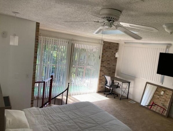 I stayed for 8 nights. If you have a big suitcase, be forewarned that getting it up the circular staircase is probably not a good idea. I recommend bringing it upstairs via the outdoor deck stairs.There were several things broken that the host was very responsive and fixed immediately.It was a good space and felt like a safe area for an older gal like me. Very quiet and peaceful.The only things I think can be improved are the cleanliness of the floors, a new knife set and a better supply of cleaning products in the kitchen (there was no dishwasher detergent). The second night after walking around barefoot all day inside the property I looked at my feet and they were black! I’d recommend the host invest in a swifter mop for both Upstairs and downstairs.As I always do and always have in VRBOs I bought a few items and left them for the next guests: salt and pepper, 2 champagne glasses and some nice Peet’s coffee for the Keurig.