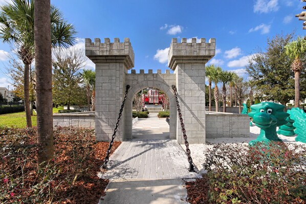 Less than a 2 minute walk to the main clubhouse, pool and water park