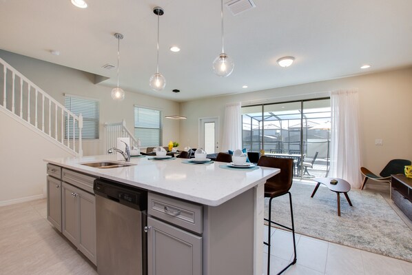 Questo nuovissimo 5 camere da letto 4,5 bagni, 2.265 mq. Ft. casa con piscina privata, sud si trova in posizione perfetta, a pochi minuti da Walt Disney World a Windsor a Westside. Questo resort a 5 stelle gated è pieno di servizi e intrattenimento per tutta la famiglia.