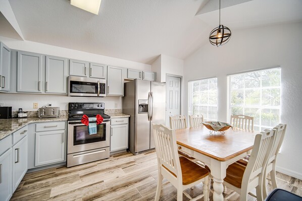 Questa casa lontano da casa è una camera da letto indipendente di quattro camere da letto 3. 5 bagno con piscina privata riscaldata e patio con vista sul fairway 9 del campo da golf Highlands Reserve. Recentemente rinnovato. La villa è divisa su due livelli con una zona giorno open space al piano terra, tra cui cucina completamente attrezzata con posti a sedere per sei persone, sala da pranzo formale con posti a sedere per otto persone e area lounge con posti a sedere per nove persone. La zona giorno comprende TV da 37 pollici con TV via cavo Spectrum inclusa, Wifi e telefono, comprese le chiamate locali verso gli Stati Uniti e il Canada. C'è anche un WC separato e una lavanderia con lavatrice e asciugatrice. Nel garage c'è un tavolo da biliardo, freccette e TV con lettore DVD. Si prega di notare che il garage non è climatizzato. Sempre al piano terra si trova la camera da letto King Master con ventilatore a soffitto e bagno privato, inclusi lavandini per lui e per lei, WC, vasca e doccia separata. Al primo piano c'è una camera matrimoniale con ventilatore a soffitto e un piccolo bagno privato con WC, lavandino e doccia singola. Ci sono anche due camere doppie con ventilatori a soffitto e bagno Family. Tutte le camere sono dotate di TV in streaming Roku con l'app Spectrum inclusa e possibilità di utilizzare Netflix / Amazon Prime ecc. Se si dispone di un proprio account. L'area della piscina comprende un'area coperta con posti a sedere per quattro dove si può gustare un caffè o un pasto al mattino mentre si gode la splendida vista sul campo d'oro. Questa area include l'illuminazione e un ventilatore. C'è anche un ulteriore tavolo e quattro sedie in mobili da piscina per sedersi a godersi il sole e quattro lettini per godersi i raggi. Situato all'interno della prestigiosa comunità Highlands Reserve Golf & Country Club, con piscina comunale, aree giochi per bambini e campi da tennis, situato fuori dall'autostrada 27 e vicino a I4 e 192, ma immerso in una tranquilla campagna con pini circostanti e aranceti. La nostra casa è in una posizione comoda per tutte le attrazioni della Florida centrale, con Disney a soli 20 minuti e l'aeroporto di Orlando a soli 40 minuti, bar, ristoranti, supermercato e farmacia sono raggiungibili a piedi. Highlands Reserve è una prestigiosa comunità di golf per vacanze e residenziali a Davenport, all'interno dell'area di Orlando. Highlands Reserve dispone di eccellenti strutture in loco tra cui una piscina comunale, campi da tennis, campo da golf a 18 buche, campo pratica, putting green e bar caffetteria che è aperto sette giorni su sette. Highlands Reserve si trova appena fuori dall'autostrada US 27, in una posizione tranquilla immersa in una splendida campagna ondulata con un'abbondanza di aranceti. E 'situato in posizione ideale per un facile accesso a tutte le principali attrazioni, con negozi, supermercati e ristoranti tutti nelle vicinanze. Un nuovo Walmart ha aperto sulla US27 a soli 5 minuti di auto. Highlands Reserve è a pochi minuti da tutte le aree principali parchi a tema. Ci sono quattro principali parchi a tema, Magic Kingdom, Epcot, Disney MGM Studios e Disney Kingdom Theme Park. Ci sono anche due parchi acquatici. Puoi scegliere tra i due centri di intrattenimento notturni. Highlands Reserve è facilmente raggiungibile da Sea World, Busch Gardens, Kennedy Space Center. e Daytona Beach. È un'ora di auto a Cocoa Beach, e un'ora e mezza da St. Petersburg e Clearwater.