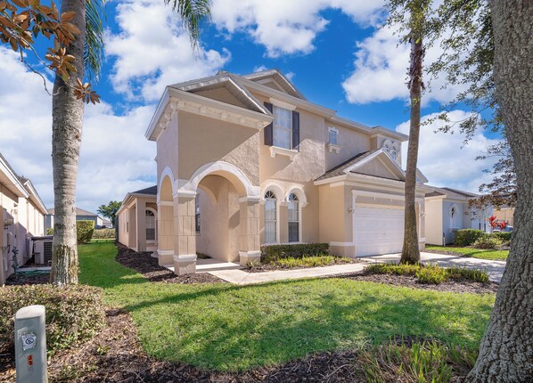 Beautiful 5 bedrooms villa sleeps up to 10 people comfortably, has two floors, and is located just minutes to restaurants, shops, & Disney. This is perfect for large families or multiple families wanting to stay together.