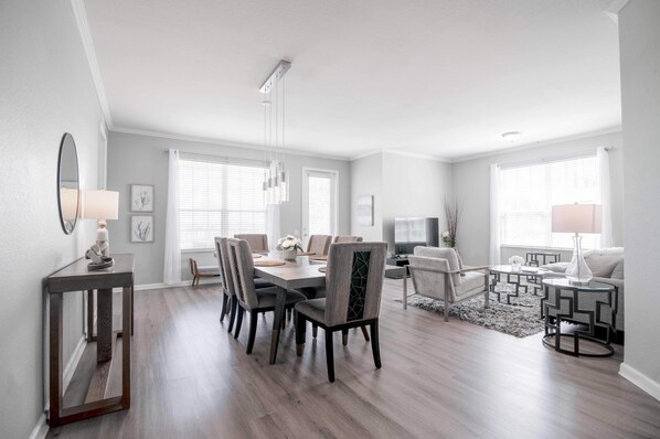 Huge 2100 sq ft Corner Condo Overlooking Lake. Near all theme parks and across the street from EPIC Universe, Universal studio’s new theme park. Walk to the convention center and International Drive. Enjoy sunsets and fireworks from your balcony. Our home has been professionally decorated and designed, and is equipped with everything to make your stay in Orlando the most enjoyable experience possible. This stylishly furnished vacation home has many small personal touches and amenities that will make your stay like a home away from home.