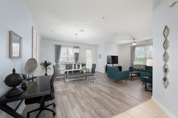 Questo grande condominio moderno vanta oltre 2.200 metri quadrati, ha un arredamento fantastico, ed è completamente arredato con tutto il necessario per chiamare questa casa lontano da casa.