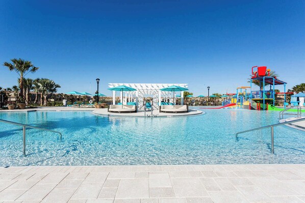 Le attività ricreative all'aperto includono un campo da pallavolo e campi sportivi polifunzionali, un parco giochi per bambini, una piscina in stile resort con un fiume lento, il Tiki Bar & Spa.