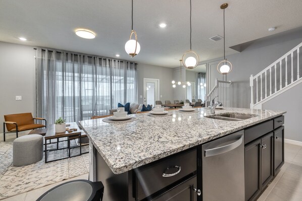 Newest Resort Windsor Island 5 bedroom townhome that will accommodate up to 11 guests. Beautiful Modern and amazing decor. This home is perfect for everyone in your group. Don't miss out on this brand new home with private pool and furnished deck.